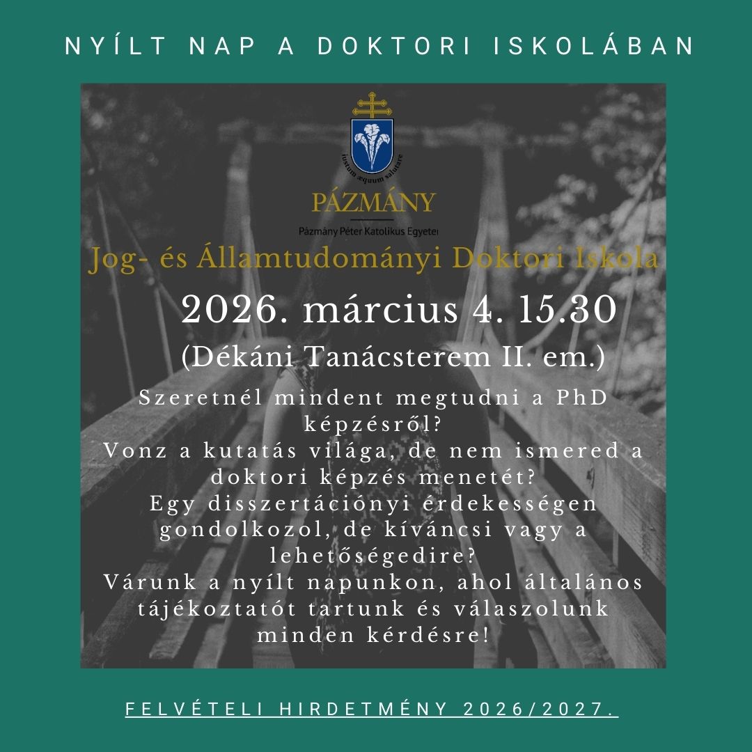 A Doktori Iskola a 2026/2027. tanévre is várja a jelentkezéseket.