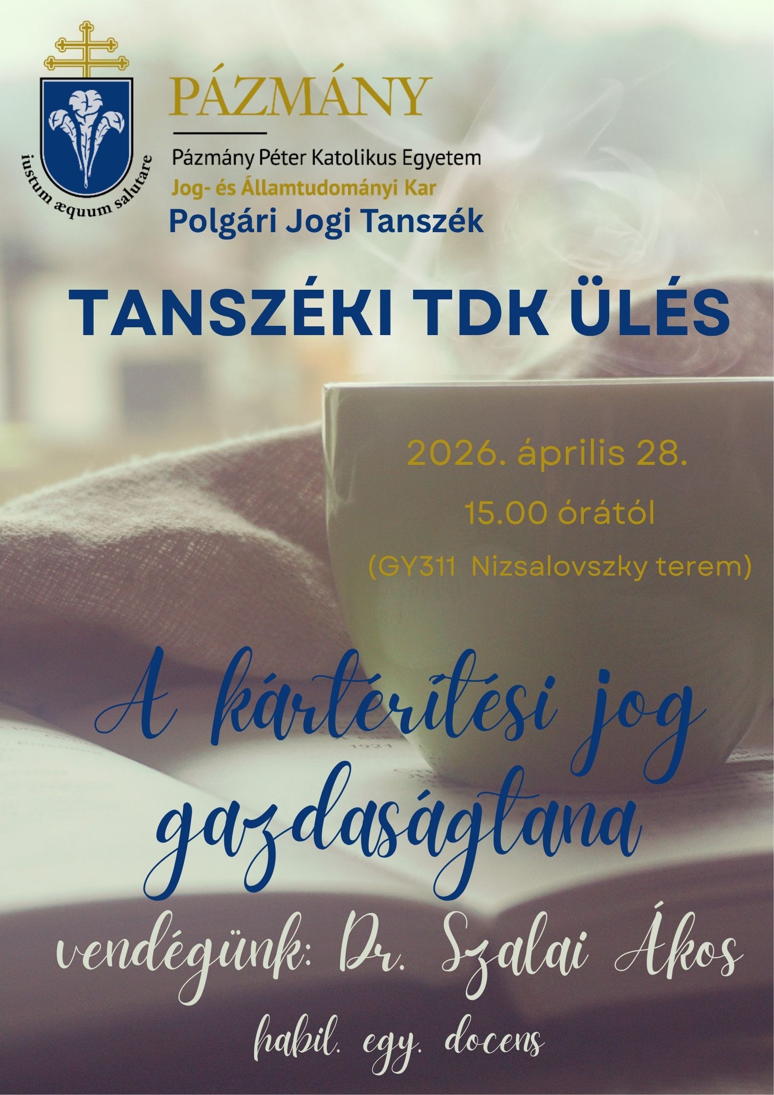 Tanszéki TDK felelősök: Dr. Pogácsás Anett (pogacsas.anett@jak.ppke.hu) és Dr. Papp János Tamás (papp.janos.tamas@jak.ppke.hu)