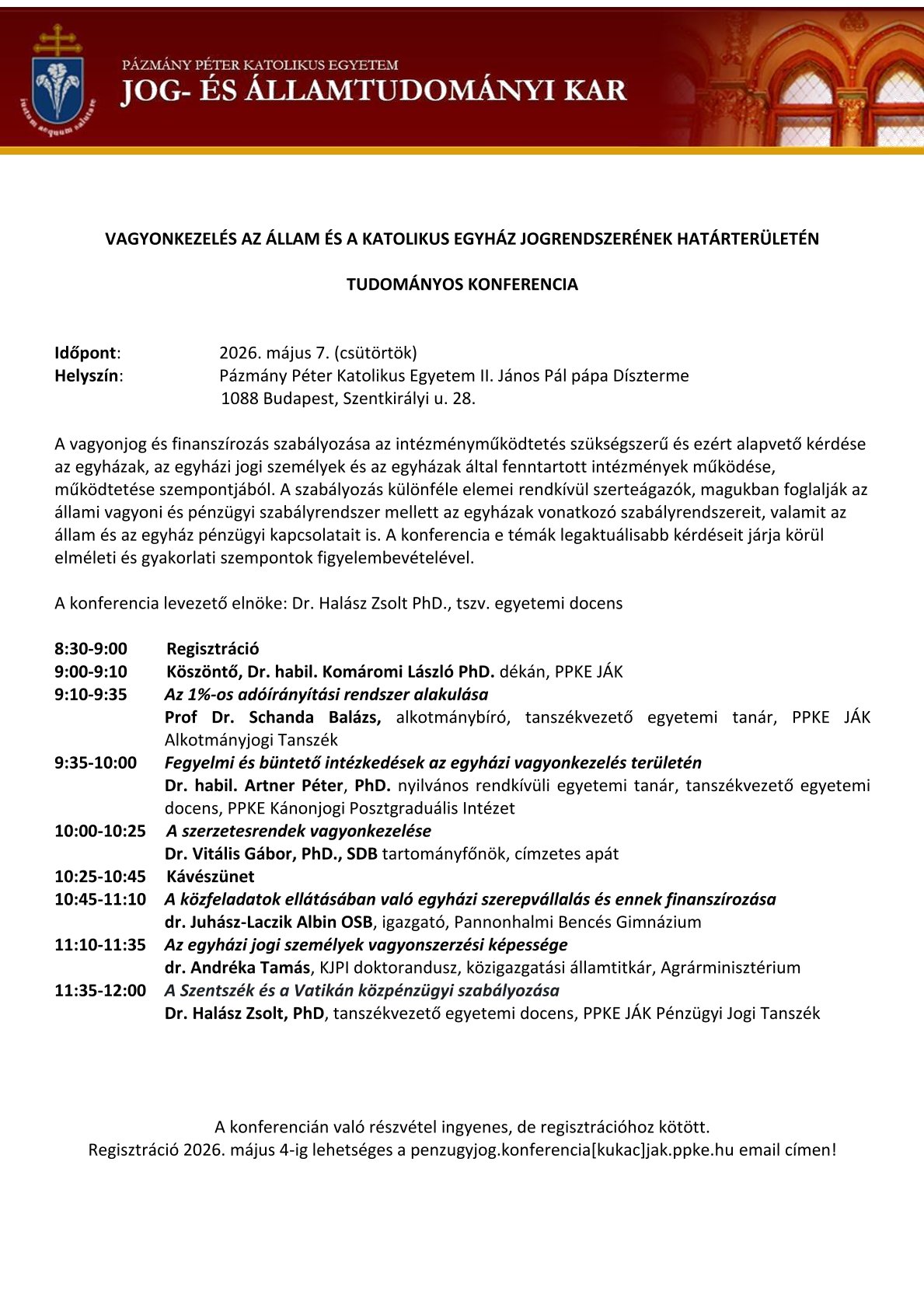 Regisztráció 2026. május 4-ig lehetséges a penzugyjog.konferencia[kukac]jak.ppke.hu email címen!